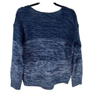 Anthropologie Quinn Blue/Gray High Low Open Knit Lightweight Crewneck Sweater