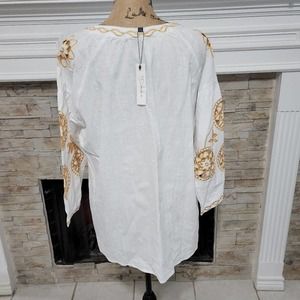 Anthropologie R D & Koko gold embroidered lantern sleeve peasant blouse new!!