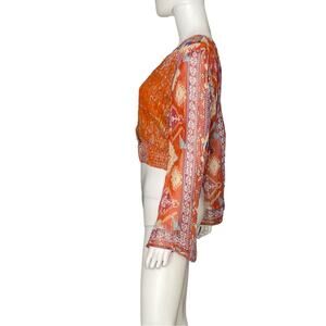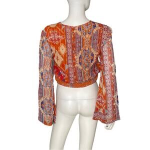 Anthropologie RAGA Metallic Thread Bell Sleeve Crop Blouse Women’s Sz XS