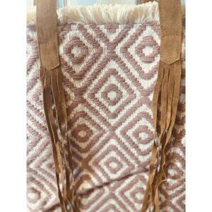 Anthropologie RAJ Mauve Tote Bag Boho Hippie Leather Fringe