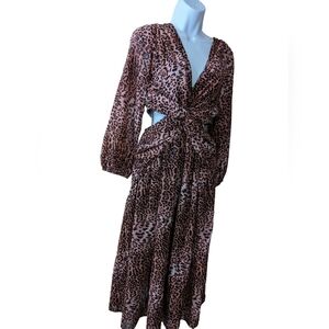Anthropologie RANNA GILL Leopard Print Printed Cut-Out Midi Dress ~Small