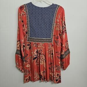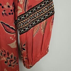 Anthropologie RD & Koko Embroidered Top Puff Sleeve Boho Hippie Orange Blue Med