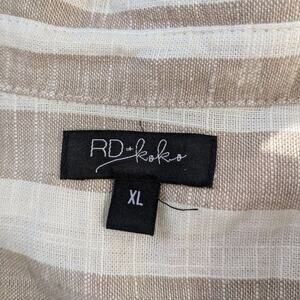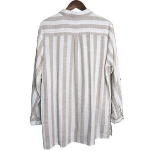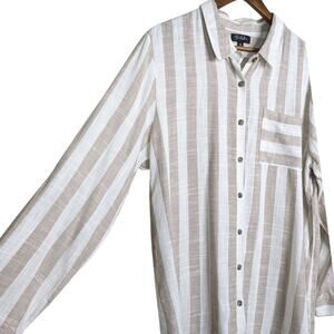 Anthropologie RD & Koko Linen Tunic Top XL Wide Stripe Button Down Pocket