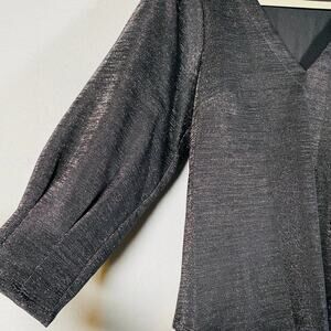 Anthropologie Women's RO&DE Cassidy V-Neck Long Sleeve Metallic Shimmer Blouse Size Small