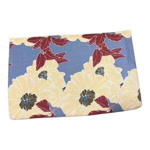 Add a pop of color and playful sophistication to your look with this Rachel Pally fold-over clutch. Featuring a bold floral print in soft yellow and deep burgundy against a slate blue background, this piece is the perfect balance of fun and elegance.