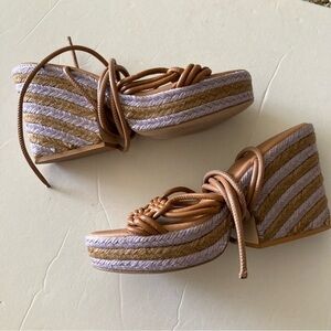 Anthropologie Raffia Platform Brown & Lavender Heeled Wedge Sandals Sz 41