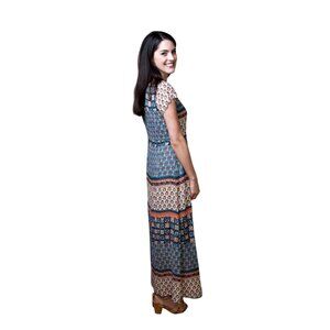 Anthropologie Raga Autumn Meadow Maxi Dress XS Blue Orange Ivory Boho