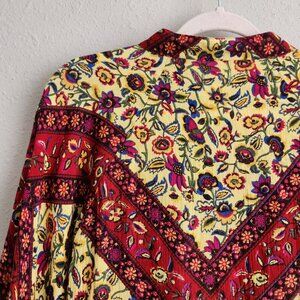 Anthropologie Raga Multicolored Print Bell Sleeve Blouse Size Small