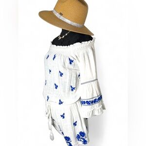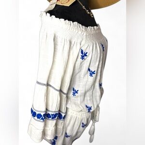 Anthropologie Raga Off the shoulder floral embroidered romper
