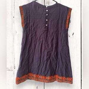 NWT Raga Womens Eggplant Purple Flower Print Embroidered in a pretty fall orange Sleeveless Blouse Top Size X-Small. Very lightweight and boho chic blouse. 100% Viscose