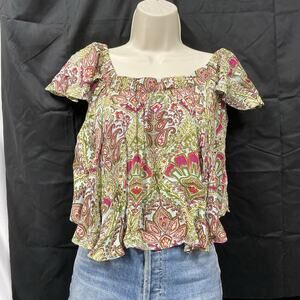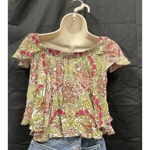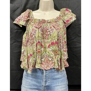 Anthropologie Raga Womens Small Top Flutter Sleeve Boho Floral Blouse NWT