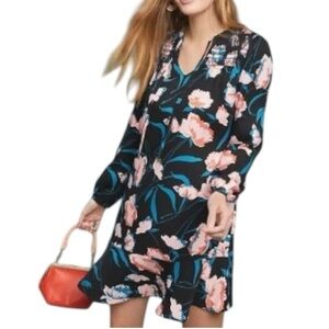 Anthropologie Ragonda Floral Print Long Sleeve Tunic Dress - Black -Size 8 - NWT
