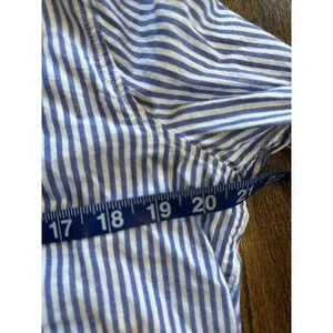 Add some style to your wardrobe with this Anthropologie Rails Banker Strips button-down blouse. The blouse features a classic fit, long sleeves, and a button closure with pearls accents. The multicolor striped pattern adds a touch of beachy vibe to your outfit, making it perfect for the summer season. This blouse is made from down fabric type and is available in size S for regular size type women. The blouse is perfect for any occasion and can be paired with your favorite jeans or shorts.