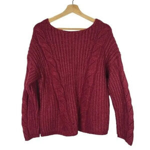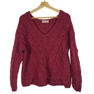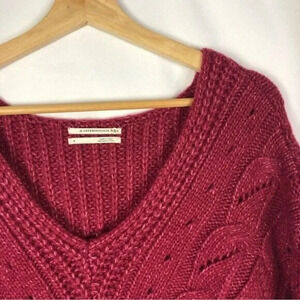 Anthropologie Ramona Violet Red Cable Knit Slouchy Sweater S