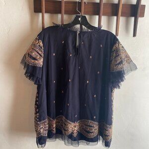 Anthropologie, Ranna Gill Blue Ornate Embroidery Top