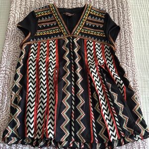 Anthropologie Ranna Gill Chevron Embroidered Cap Sleeve Blouse Aztec Size 0