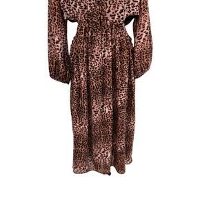 Anthropologie Ranna Gill Dress Midi Leopard Print Cut Out Long Sleeve Size XL