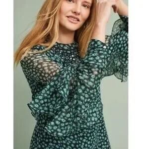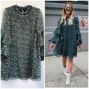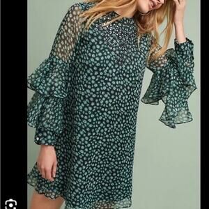 Anthropologie Ranna Gill Fluttered Tunic Tiered Bell Sleeve Shift Green Dress