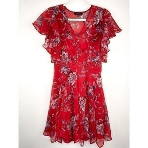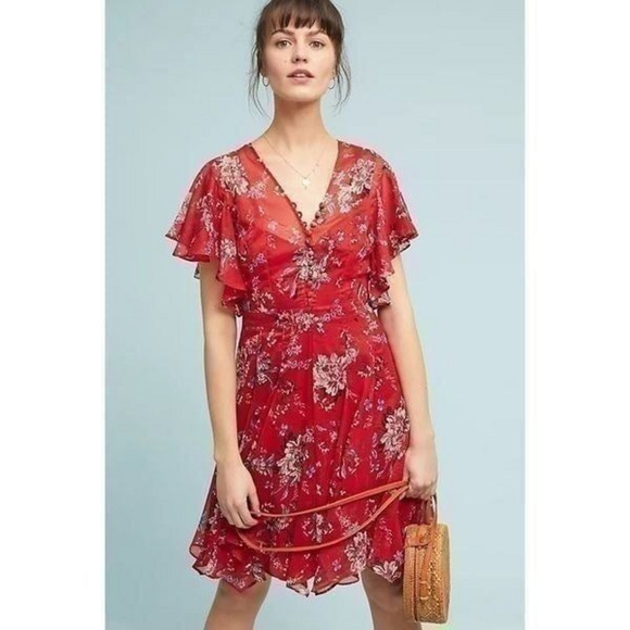 Anthropologie Ranna Gill Keira Red Floral Dress Size XS