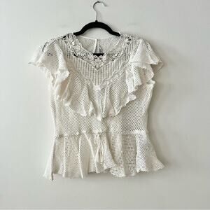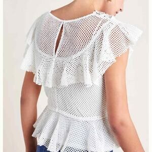 Anthropologie Ranna Gill Mesh White Peplum Top
