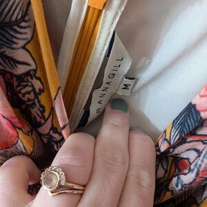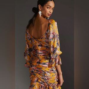 Anthropologie Ranna Gill Ruched Floral Minu Ruffle Yellow Puff Sleeve Size M