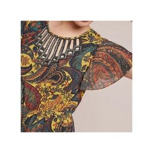 Anthropologie Ranna Gill Yellow Georgie Embroidered Paisley Jumpsuit NWT size 6