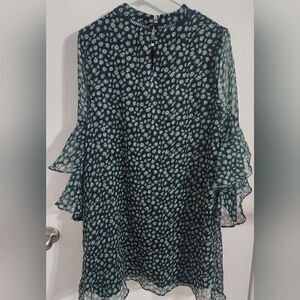 Anthropologie Ranna Gill Flutter Long Sleeve Tunic Mini Dress Green Size Medium