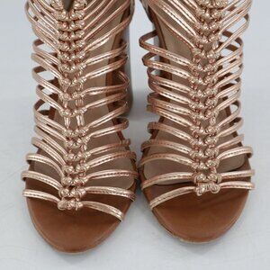 Anthropologie Raphaella Booz Copula Heels Womens 6 Rose Gold Bohemian NYE Retro