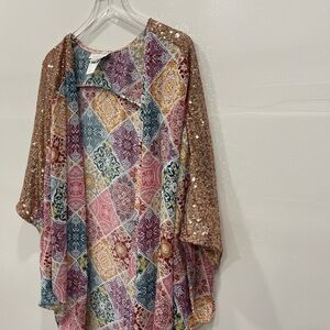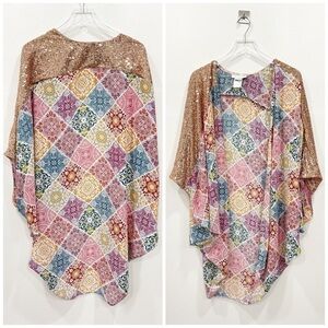 Anthropologie Rare Sachin & Babi Jaya Kimono One Size Sequin Trim Printed Boho
