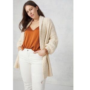 Anthropologie Rashida Chunky Knit Open Tunic Cardigan Sweater Boho Cream Medium