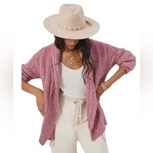 Anthropologie Rashida Open Cardigan Pink Chunky Open Cable Knit Oversized Small