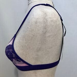 NWT. Triangle Mesh Bra for Women Size S. Unlined purple and pink mesh and lace mixed media, double straps front, adjustable slides, 3 extensions and 2 hooks. Chocker is not included. Pictures are part of description.