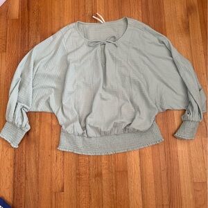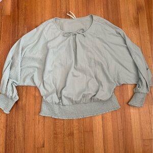 Anthropologie Rebecca Long Sleeve Smocked Waist Peasant Top Mint Green Size Large (j6)