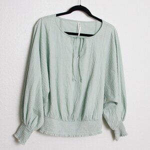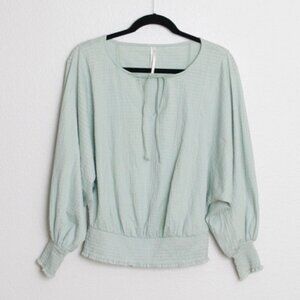 Anthropologie Rebecca Smocked Puff Sleeve Textured Peasant Blouse Light Green S