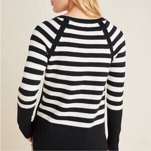 Anthropologie Rebekah Sweater Black & White Striped Raglan Sleeve Knit Winter Tunic Sweater