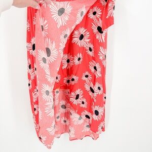 This vibrant red midi skirt from Anthropologie features an elegant wrap style with an asymmetrical hem, perfect for casual outings or resort wear. The lightweight fabric drapes beautifully, offering a comfortable and stylish fit for any relaxed occasion.