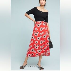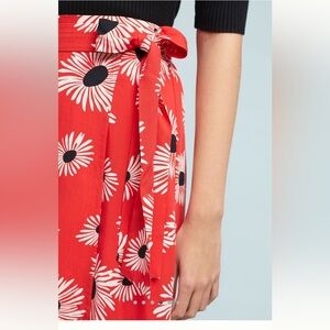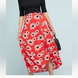 Anthropologie Red Asymmetrical Wrap Midi Skirt