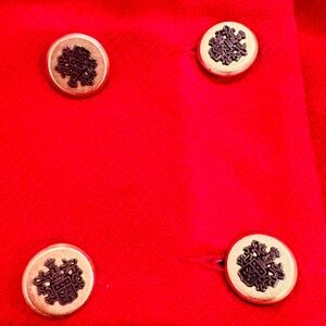 Make a bold statement with this gorgeous Anthropologie by Third Piece red coat. Designed with a chic double-breasted front, gold-tone buttons, and oversized patch pockets, it gives off a modern yet timeless retro-inspired feel. The 3/4 sleeves and tailored collar add an effortlessly stylish touch.