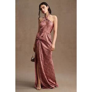 Elegant red maxi dress. Floral pattern. Halter neck design. Perfect for evening wear. Never worn.