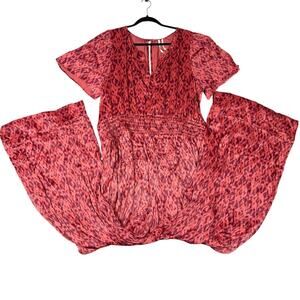 Anthropologie Red Ikat Wide Leg Smocked Waist Jumpsuit XL