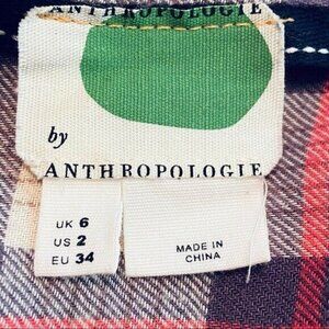 Anthropologie Red Medford Plaid Flannel Tunic Button Down Shirt Women’s Sz 2