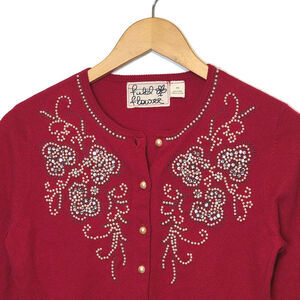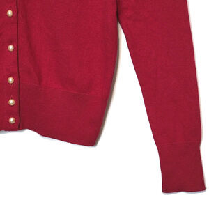 Anthropologie Red Pearl Bead Cardigan Sweater Scoop Neck Holiday Festive XS