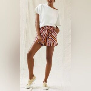 Anthropologie Red Pink Combo Belted Stripe Cotton Shorts $68 Boho hippie beach