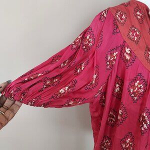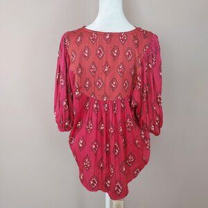 Anthropologie Red & Pink Drapey Henley Top Size Med