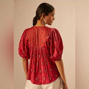 Size med Anthropologie Red & Pink Drapey Henley Top. 100% polyester. Pullover style. Functionalbuttons at neckline. Flowy relaxed fit. Pit to pit 22.5" Length 24.5" Very good pre-owned condition.