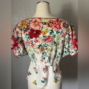 Anthropologie Red and Pink Short Sleeve Crop Blouse
