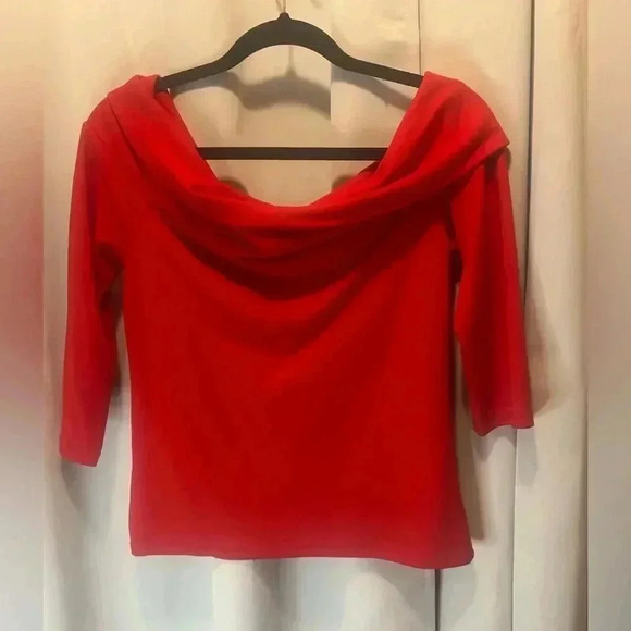 Anthropologie Off The Shoulder Top Womens Size m 3/4 Sleeve Stretch Knit. Red.