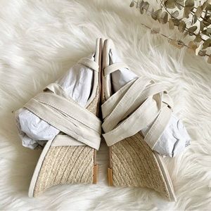 Anthropologie Reformation Alessa Lace-Up Wedge Espadrille Heels Cream 8.5