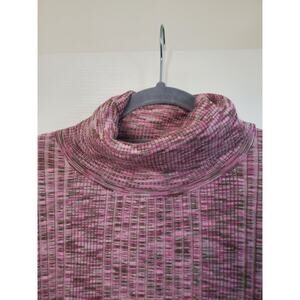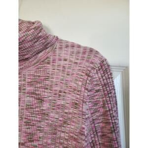 Anthropologie Ribbed Knit Marled Turtleneck Button Cuffs Pink Sweater NWT Sz XL