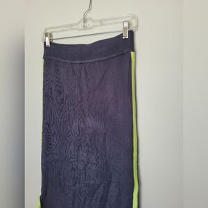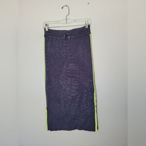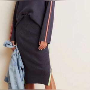 Super cute and stylish ribbed Knit Skirt from Anthropologie's house line. Deep cement gray color with a neon racing stripe on the side slit, very flattering and Sporty! Stretchy and endlessly versatile. Excellent condition. Size medium measures approximately 30 inches long 27 inch waist unstretched (lots of stretch to it)